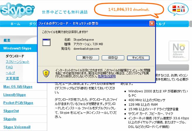 先の簡単な説明でも書きましたが、インターネット経由で相手と繋がるので、インターネットに 接続されているのが条件になります。また、回線はADSLや光ファイバー、ケーブルTVインターネットで あれば、OKでしょう。ただし、電話回線でのダイヤルアップ、ISDNやPHSでは、速度が遅いので、音声が聞き取りにくくなったり、 途中で切れてしまったりします。