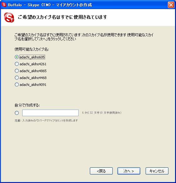 ちょっと工夫が必要かもしれません。ちなみに、すでに登録されている名前だと、